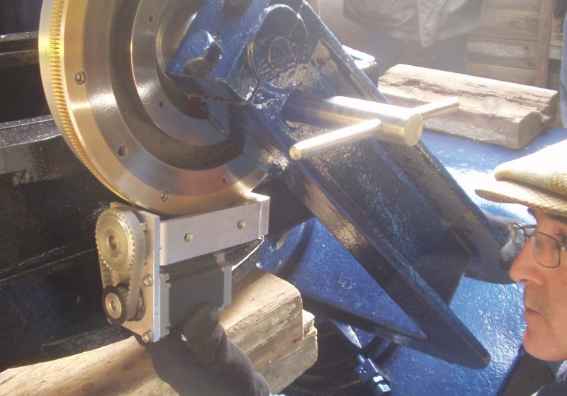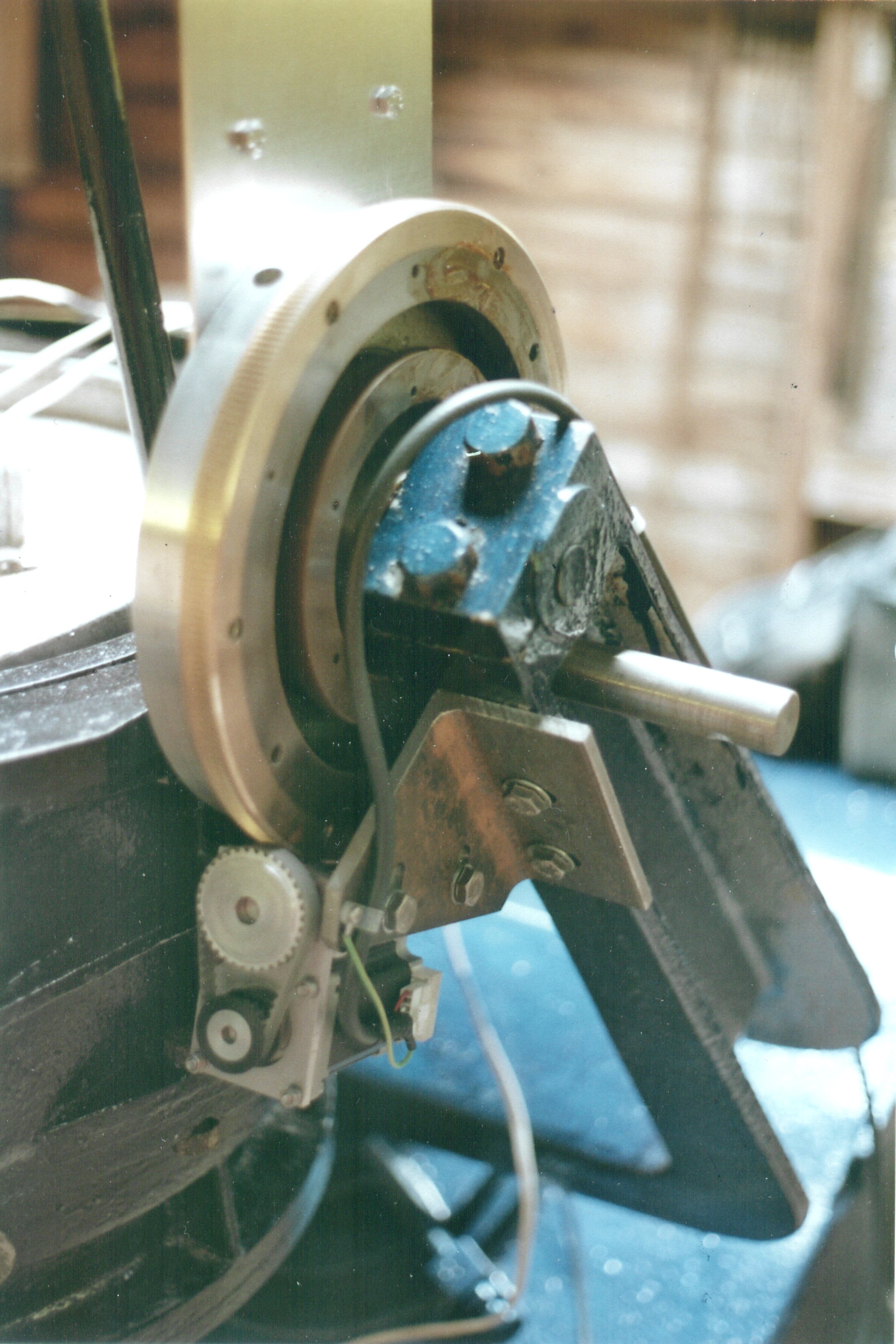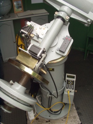 AWR attended the opening of Bruce Kingsley's Observatory earlier in 2008 by Sir Patrick Moore. The octagonal dome and telescope is ex Sir Patrick and has been lovingly restored and improved by Bruce. You will know Bruce's photos as many of his planetary shots have graced the pages of 'Sky At Night' magazine and programme. AWR brought the 1906 Browning mount up to date with a powerful GOTO system fitted. A worm and wheel (Phosphor Bronze rim by Beacon Hill Telescopes) was supplied for the Declination and intricate sprung motor brackets fitted to both axes. You cannot imagine the weight of the individual bits of the mount .... the 70mm dia DEC shaft and tube support weighed 40kg, the bell shaped pillar weighed 80kg etc. Transport to our workshop was hard but making the final azimuth adjustment for polar axis alignment was definitely very difficult! The payload has been tested up to 36kg with no noticable problem in tracking or goto performance at our workshop. The original 8 inch Newtonian in its cast iron tube is shown in the pictures. It is destined to take Bruce's 16 inch SCT.